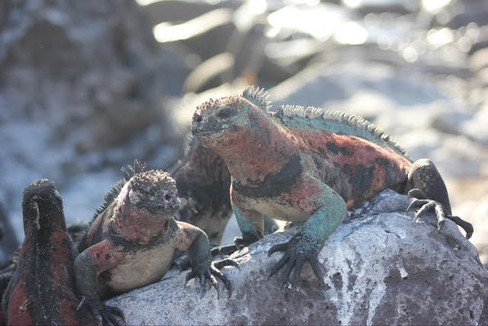 We stepped off the boat and right away, we saw a baby shark swimming and a ton of cute sea lions. It was the most beautiful beach I’ve ever been to in my life. My family and I went to a deserted beach in Galapagos. We saw a bunch of native animals while we were there. After we got off the boat, we first went on a hike to see birds like the blue-footed boobies. By the end of the day, we saw mockingbirds, red-footed boobies and nazca boobies. We ventured to a lake on the island and saw at least 20 light pink flamingos. They were really pretty. They were mostly eating the shrimp while we watched. Did you know that flamingos are pink because of how many shrimp they eat? As we traveled from deserted island to deserted island we could look over the boat and see bright red crabs on the rocks. We also saw hundreds of the Galapagos iguanas, both on the land and swimming in the water. There are two different types of iguanas: land and marine. I thought the marine iguanas were cool because they would eat the algae then spit out the salt from a hole in their forehead. We also saw huge male marine iguanas that would fight each other for food or female attention. So cool! But the best part was seeing the land tortoises. We saw some small ones, but most of them reached almost to my waist. Even though I really wanted to touch one, my family was really good at following the rules of not touching the wildlife. We didn’t want to disturb them.
